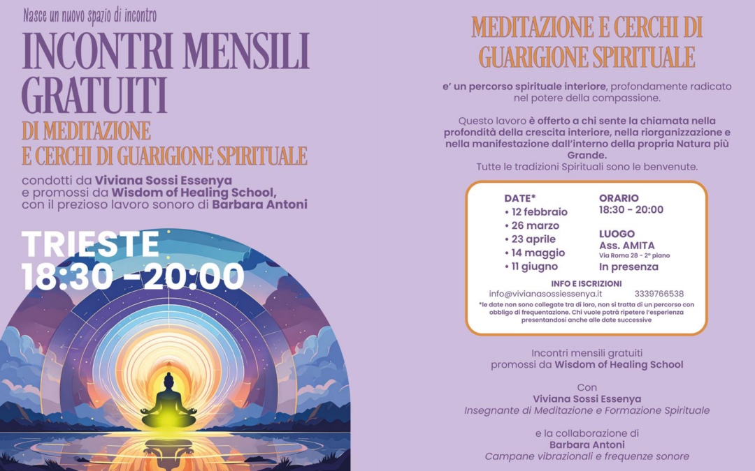 Prendono avvio gli incontri mensili gratuiti di Meditazione e Cerchi di Guarigione Spirituale, promossi nel mondo da Wisdom of Healing School e condotti da me.